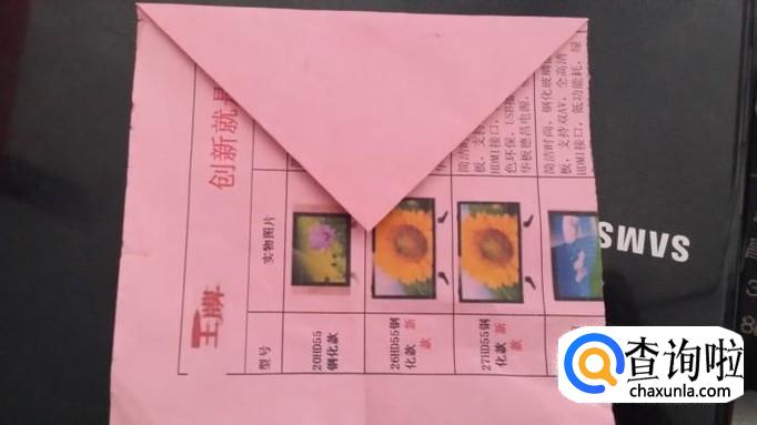 然后反过来,把上面的两个角沿对折线像图中那样折过来。