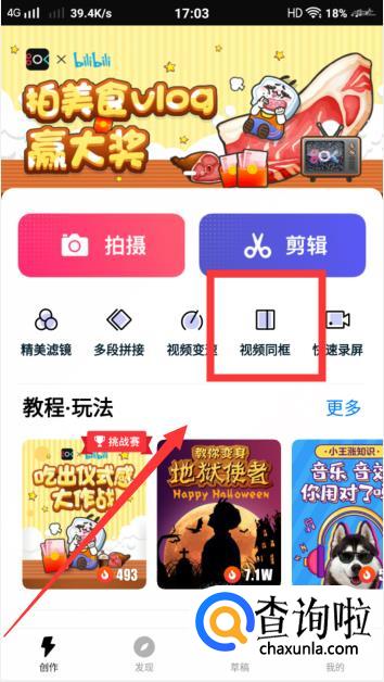 进入后,在主页中找到【视频同框】的功能,点击进入。