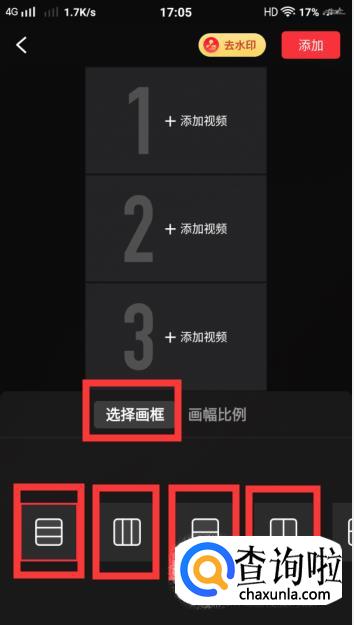 进入后,就可以添加视频啦,可以选择不同的画框,这个就任你自己选择啦。