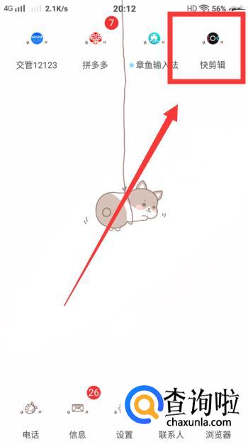 打开手机,在桌面上找到【快剪辑】这个软件,点击进入。