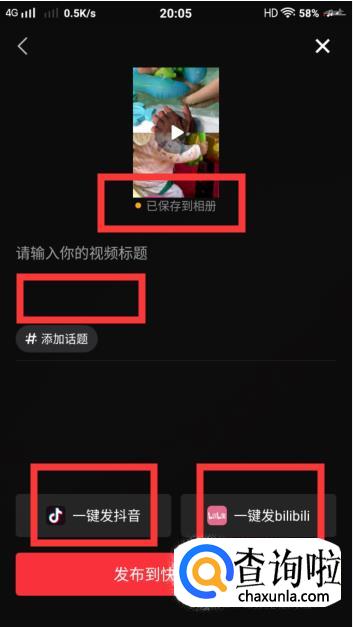 待生成完成后,视频就已经保存到了相册啦,也可以给视频编辑一个标题,可以发抖音,也可以发B站哦。