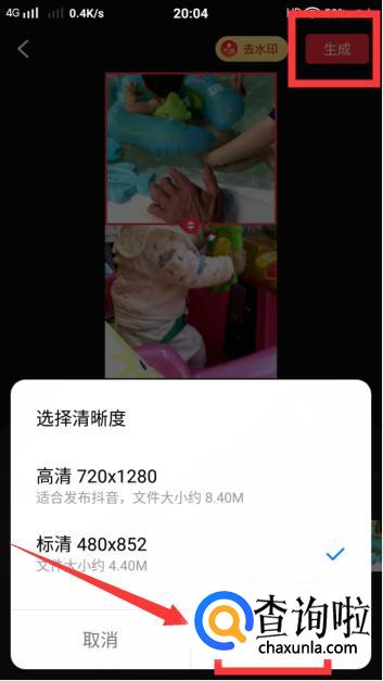 待这些都设置好之后,点击右上角的【生成】,然后还可以选择一下清晰度,可以根据你自己的情况选择吧,选择好后,点击【生成】。