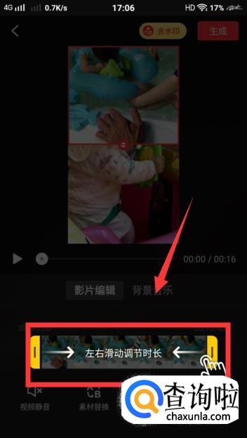 导入后,若视频太长可以在下方对其进行【图片编辑】,点击【背景音乐】就可以对其添加背景音乐啦。
