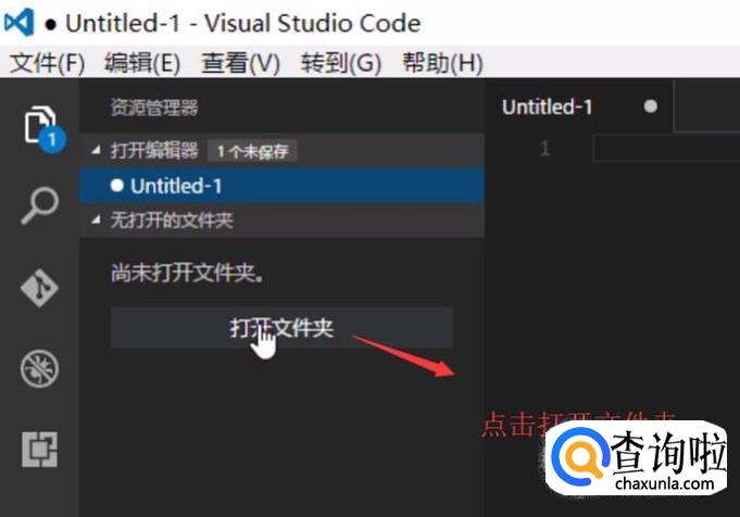 首先我们打开Visual Studio Code软件,展开资源管理器,然后点击打开文件夹按钮,如下图所示