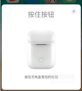 在充电盒背面靠近充电接口的位置有一个圆形按钮,长按它直到LED灯发出白光并闪烁。