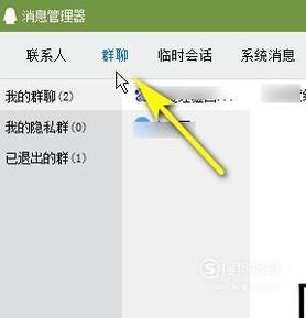调出信息管理器。看上面的这一栏的菜单,点击:群聊