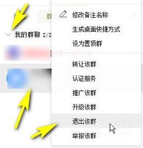 再点下面的“我的群聊”,展开所有QQ群,鼠标在要退出的QQ群这里右击,弹出菜单再点:退出该群