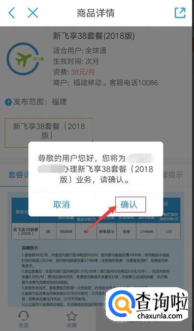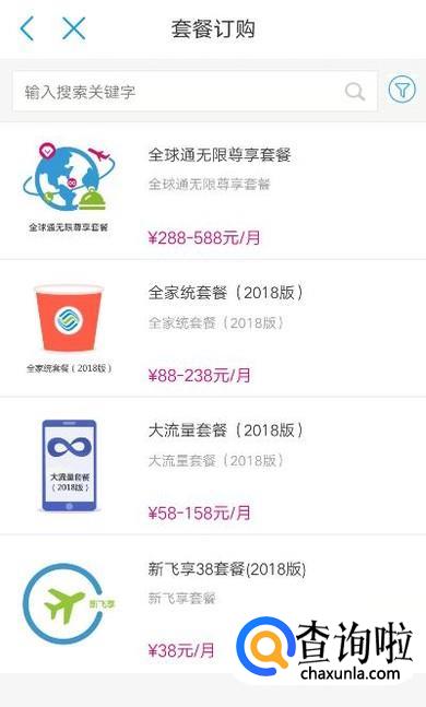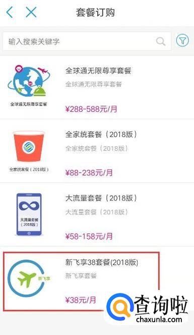 在套餐订购界面中会看新飞享套餐的字样,如图