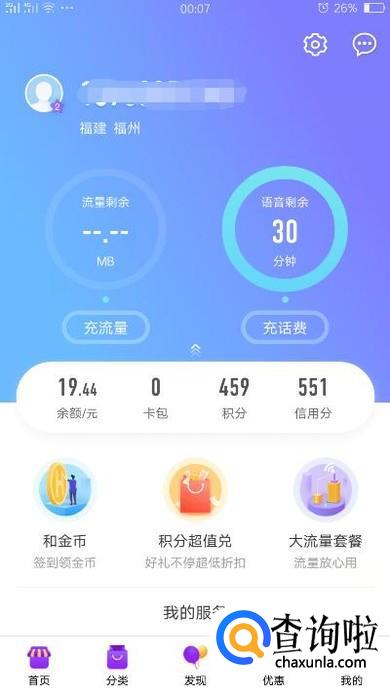打开中国移动APP点击我的功能会来到我的服务界面,如图