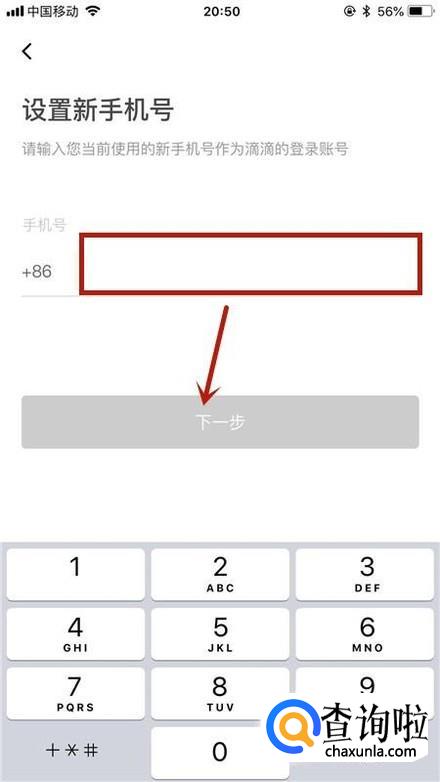 接着输入你的新的手机号,并点击下一步,如下图所示。