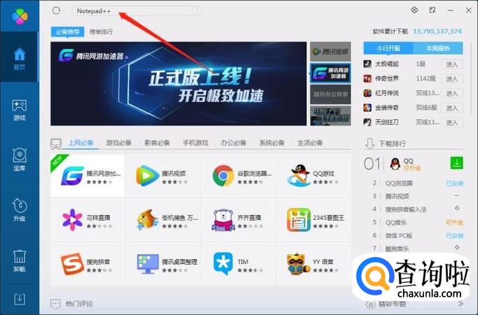 然后我们在软件首页搜索框输入“ notepad++”查找。