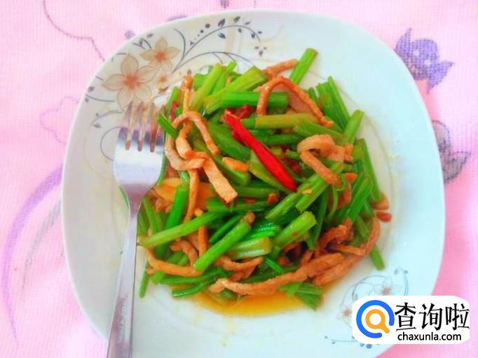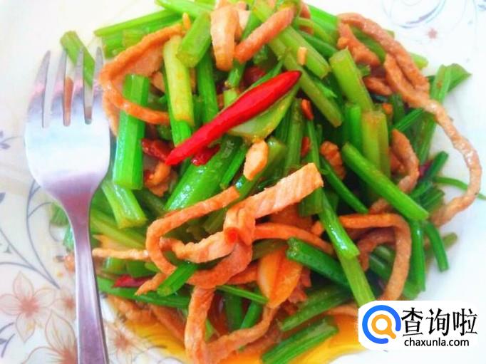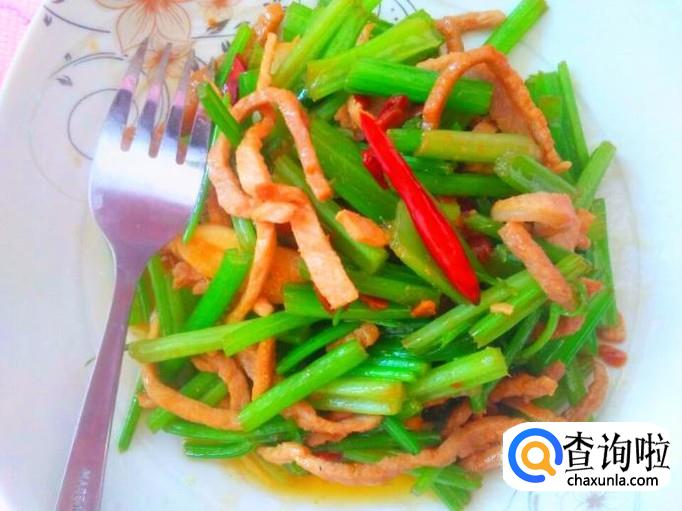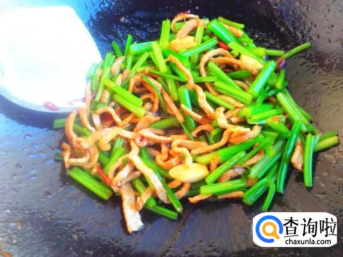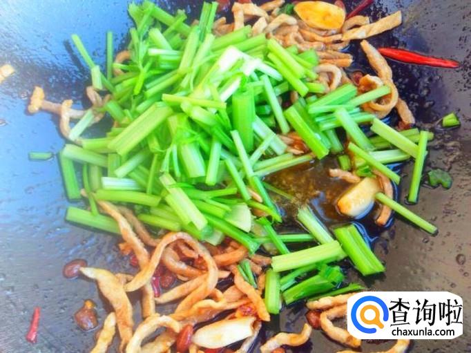肉丝焯过水所以不用长时间炒,会影响口感的,炒好之后把芹菜段放进去。