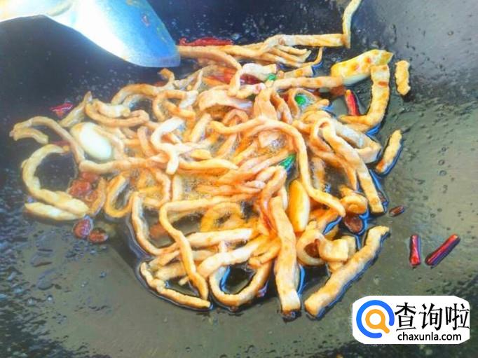 用铲子翻动肉丝,让每一根肉丝争取都有豆瓣酱的香气。