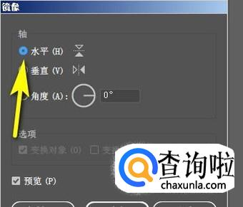 调出了镜像操作面板。在这面板中选择“水平”;