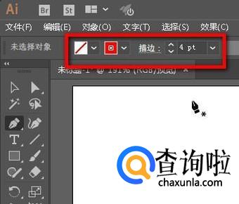 按P键,调出钢笔工具,设置无填充色,红色描边,描边大小为4pt。