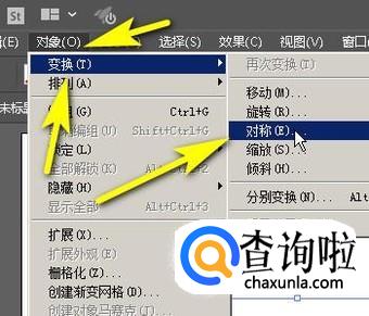 鼠标移到菜单栏中点:对象,弹出下拉菜单再点:变换;再点:对称。