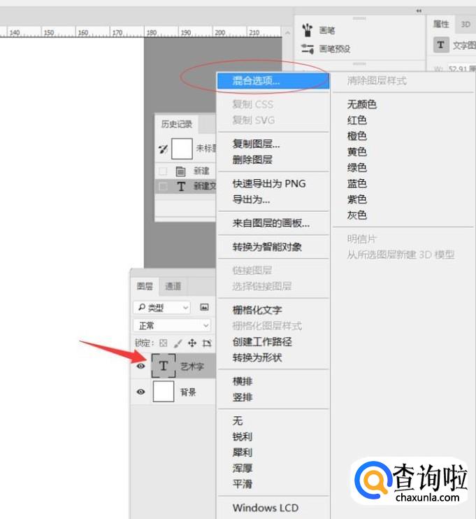 在文字图层上鼠标右键,选择混合选项