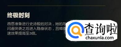 薇恩的r是她最重要的技能,开启r的时候,释放q技能可以隐身1秒,被动提升到移动速度增加到60,攻击力增加50,所以在薇恩开启r的时候你尽量要躲在防御塔里面,以免被她击杀