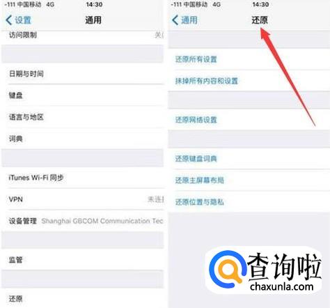 完成备份,就可以将这些数据再下载到新手机上了。可以先在新手机上,点击“设置——通用——还原——抹掉所有内容和设置”。当然,要是手机刚刚到手刚开机,那先按照提示操作。