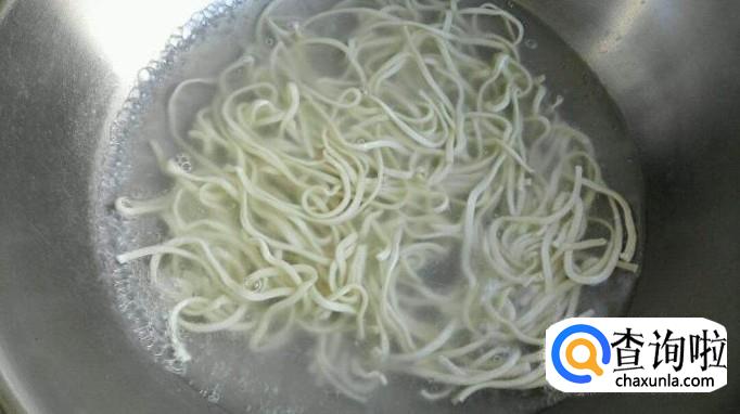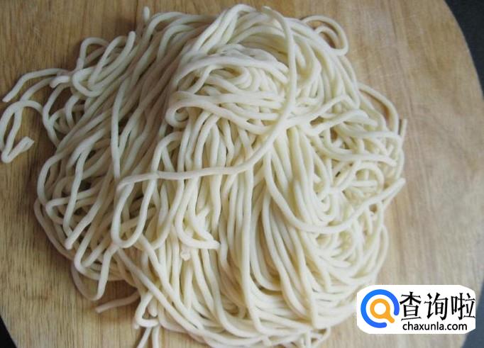 首先我们将准备的面条煮一下,煮熟后捞出,平铺在桌面上,方凉后抹上少量油,油要抹熟油。