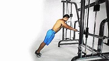 做上斜俯卧撑,双手放在较高的位置,双手之间的距离和肩膀的宽度。 伸直双臂支撑身体,用前掌支撑身体,用双手支撑体重。 踝关节的头部保持笔直,腹部收紧。