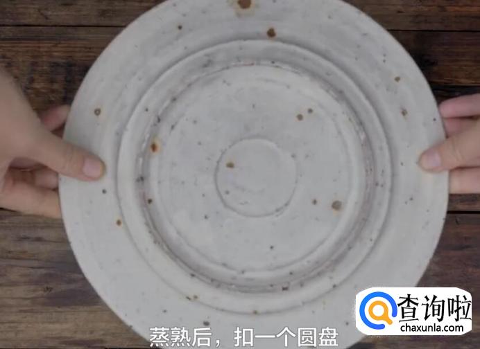 蒸熟后,在上面扣一个圆盘。