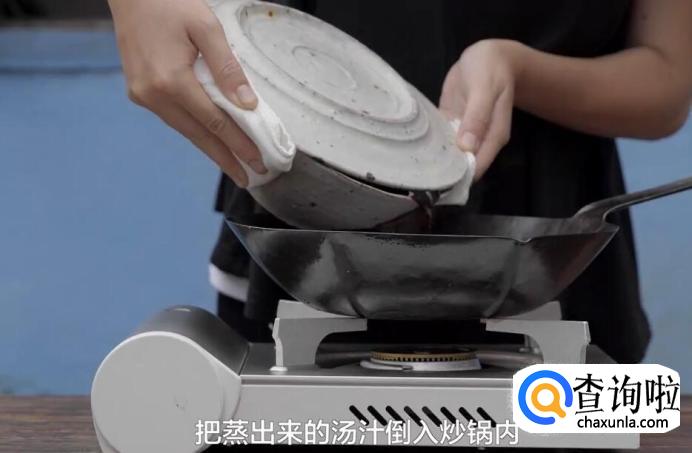把蒸出来的汤汁倒入炒锅内。