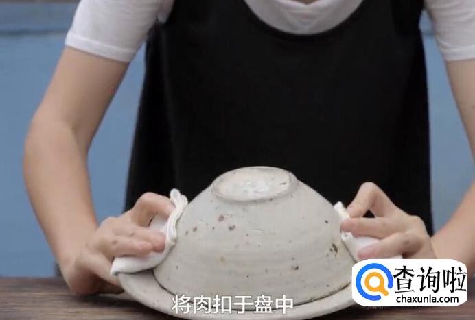 再将碗倒扣,将肉扣于盘中。