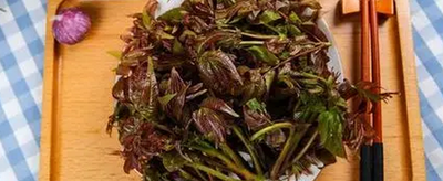 将刚买回来的所有香椿芽清洗干净,挑去老叶以及出现损坏的部位,只留下新鲜的嫩叶;准备一锅清水将其烧开,水开之后将香椿芽放入,用热水焯熟。刚开始没有熟的香椿芽是紫红色的,之后焯熟的香椿芽是全绿色的。