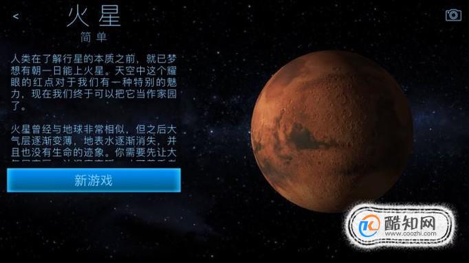 这里会对火星进行介绍,还可以拨动后面火星的球体进行360度查看,看完了选择新游戏按钮。
