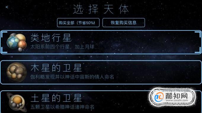 回到游戏主界面选择开始后,我们进入要选择一个天体作为你的建设基地,天体有多种选择,比如类地行星,木星的卫星等等。