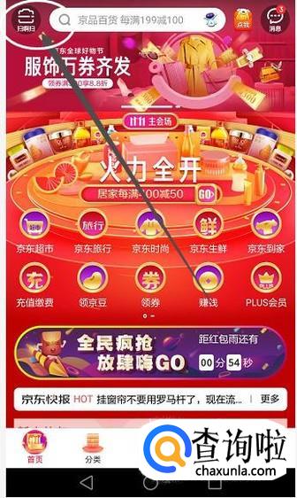 首先打开京东APP的首页,找到左上角的“扫购扫”。