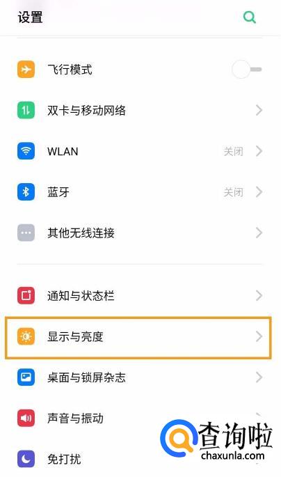 进入设置界面之后,手指按屏幕轻轻往下滑找到【显示与亮度】