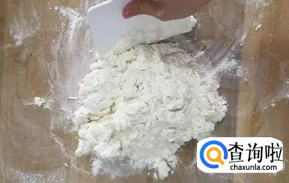 面粉呈雪花状时,揉成面团。