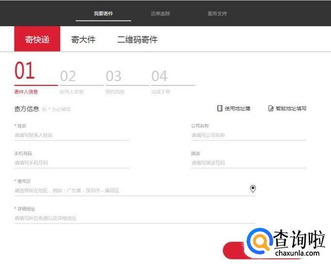 按照系统提示,输入寄件人信息→收件人信息→预约信息后完成下单。然后等待快递员在规定上门时间内上门取件即可。