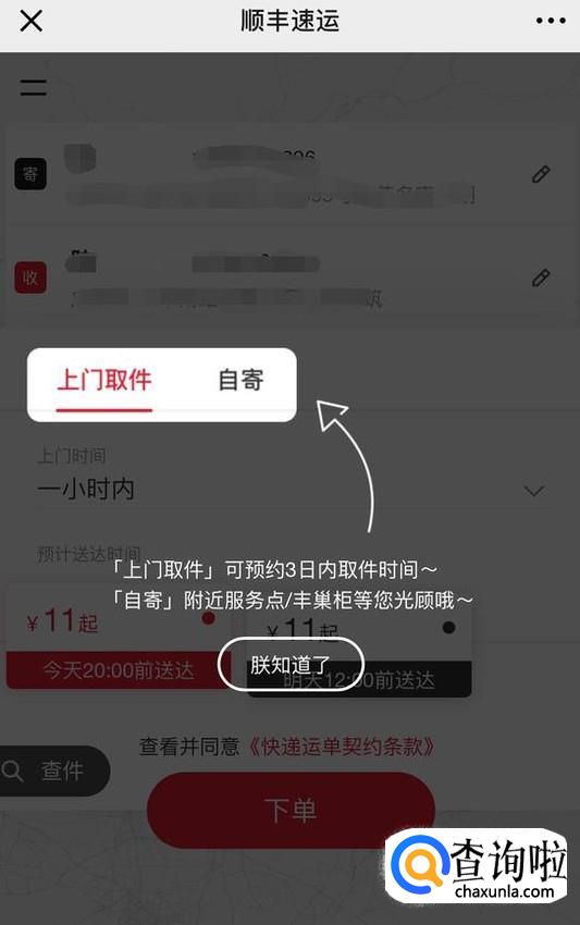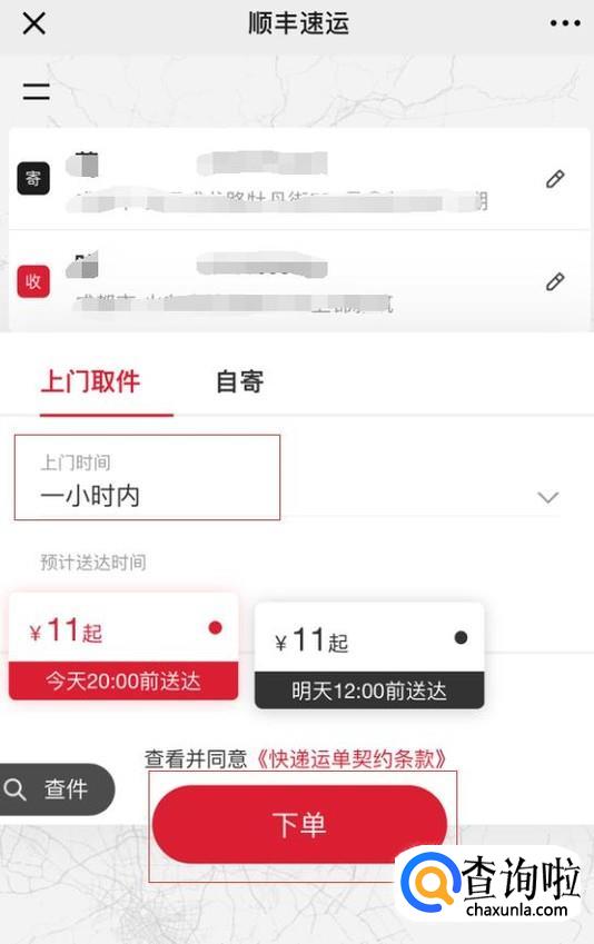 选择好上门时间后,点击下单。然后等待快递员在规定上门时间内上门取件即可。