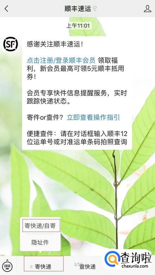 打开对话框,点击“寄快递”→“寄快递/自寄”。