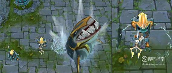 这款皮肤是有特效的,而且效果也不错。虽然Q和E的特效不明显(但是真有特效),但是大招召唤出来的鱼还是很有个性的。