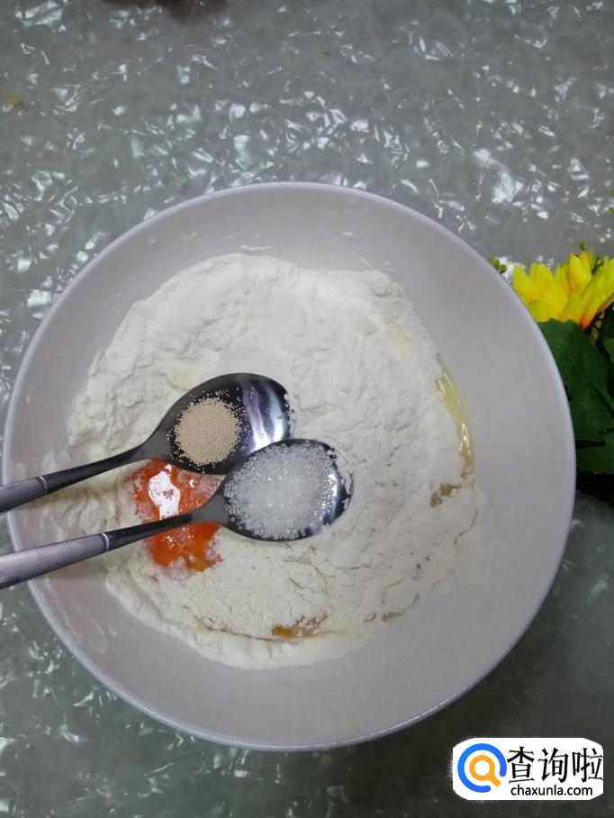 面粉200克,鸡蛋一个,酵母粉三克,白糖一勺。