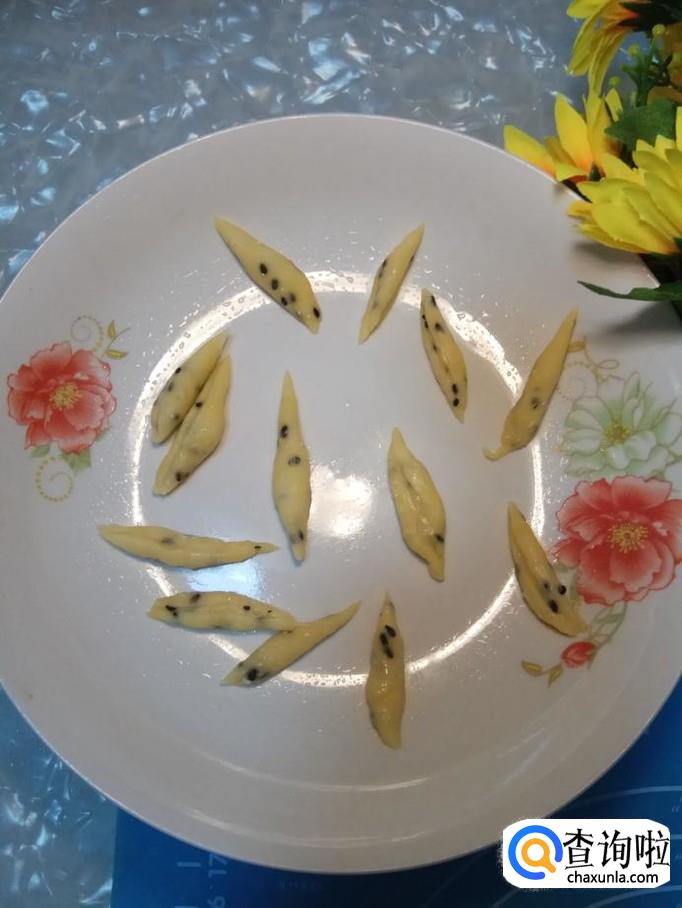 面团醒好之后,用剪刀剪出小面鱼的形状。注意,小鱼可以适当剪得小一些,这样炸出来的口感更好。