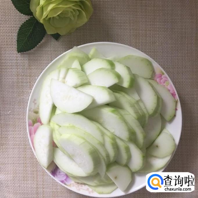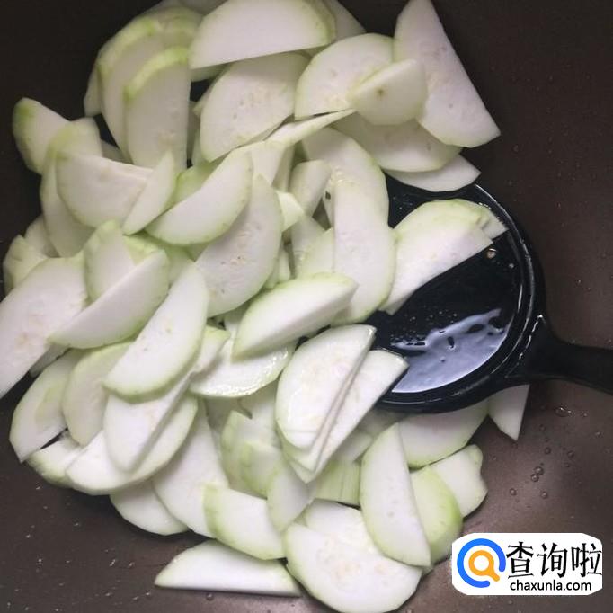 然后把西葫芦去皮切成薄片,倒入锅中翻炒五分钟。
