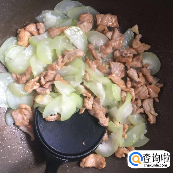 接着把瘦肉倒入锅中翻炒五分钟,起锅备用。