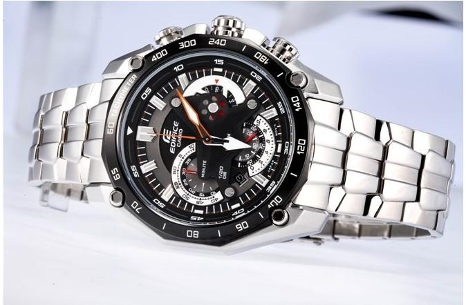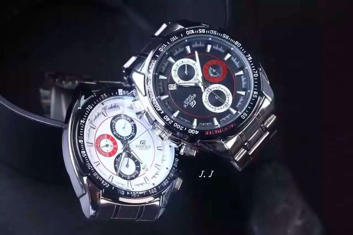 卡西欧手表调整日期和时间对于不同的型号是有些许的差别的。对于EF-305/EF-306/EF-316/EF-317/EF-322等型号,当秒针在12点位置上时,拔出表把至第二格,这时秒针会停止。然后转动表把调动指针,从而设置日期,日期设置完后再细心设置时间,并确认好上午或下午,调校好所需的时间后,将表把向内推入原位。