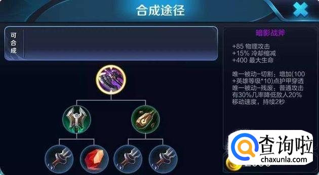 此外就是第四件装备了,这里可以出暗影战斧,也就是黑切,能够提供攻击力加成以及护甲穿透。