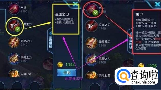 第三件装备自然要选择一件能够提供续航的装备了,这里推荐泣血之刃,能够增加攻击,并且能够提供生命续航。