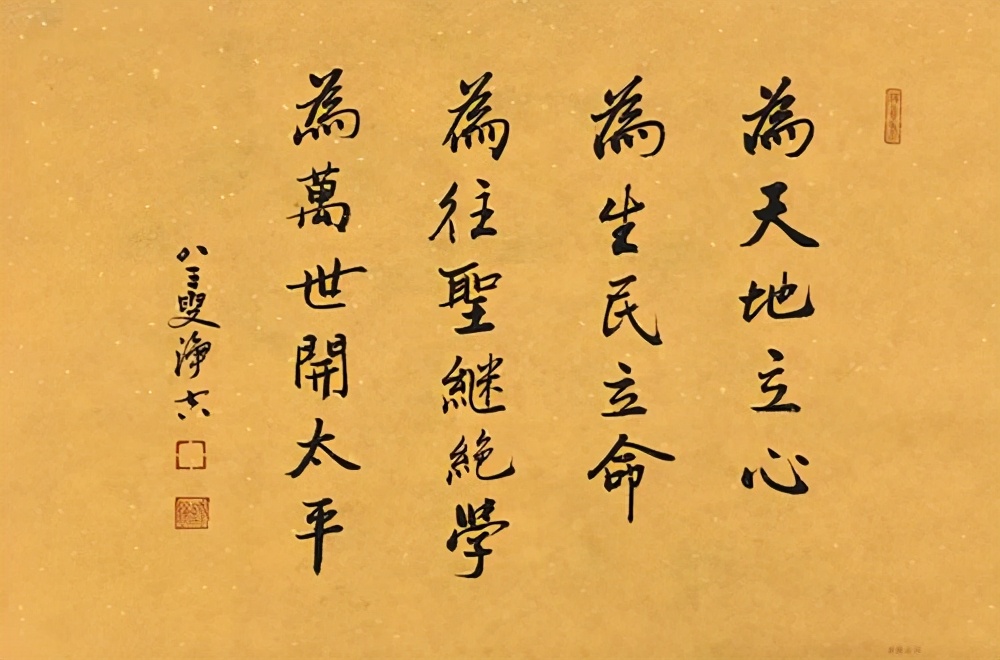 横渠四句,即“为天地立心,为生民立命,为往圣继绝学,为万世开太平”,为北宋大家张载的名言。当代哲学家冯友兰将其称作“横渠四句”。由于其言简意宏,一直被人们传颂不衰。