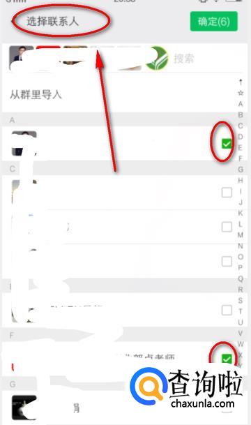 然后再选择联系人,在联系人右边勾选即可。