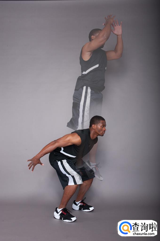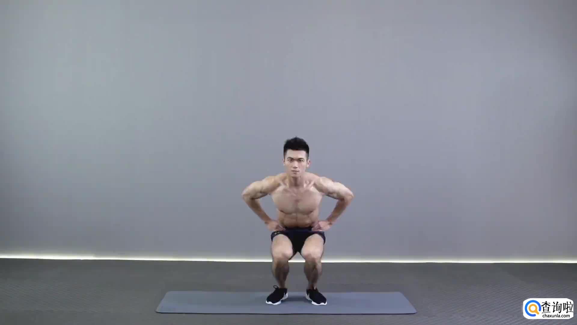 开始时,半蹲至1/4的位置,双手放置于前,向上跳离地面最少20到25cm。(如果你觉得容易的话,你可以跳至25-30cm)。 当在空中,你的双手需放在后面。着地时,完成一次。接下来,只需重复以上步骤。