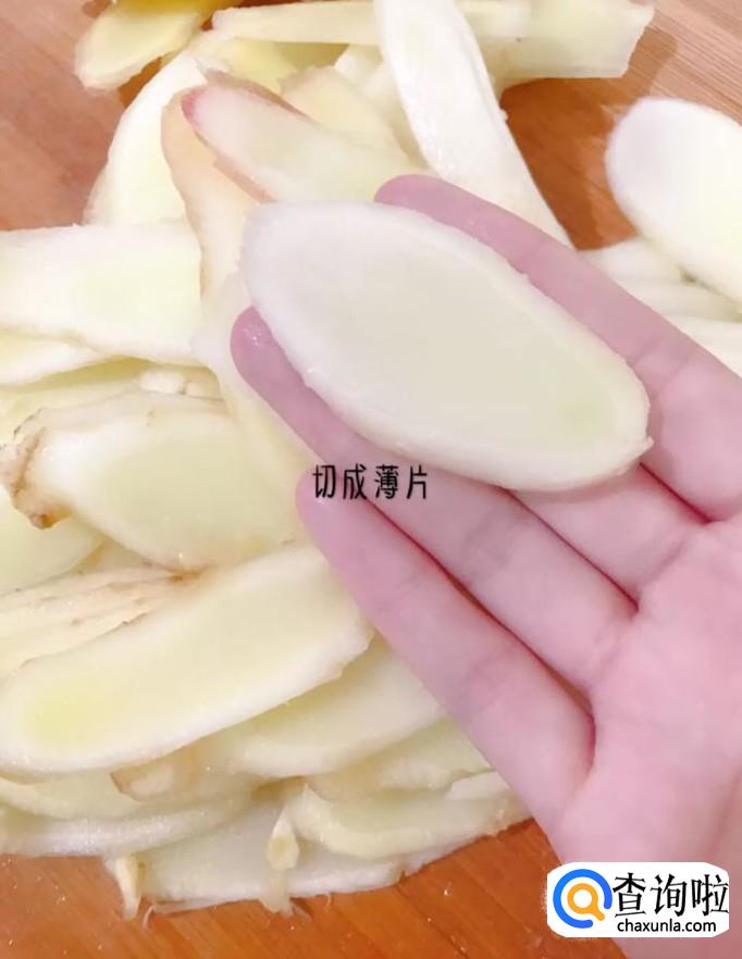 然后用刀把生姜切成薄片,如下图所示。
