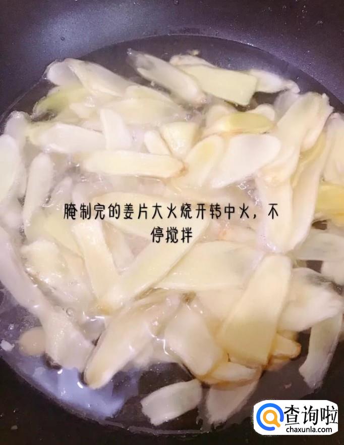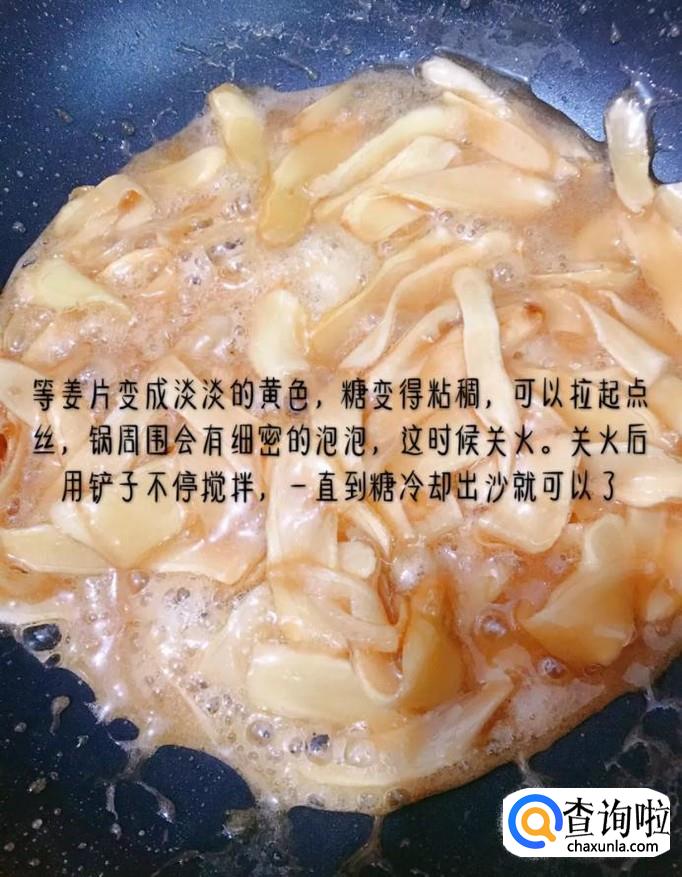 等到姜片变成淡淡的黄色且糖变的粘稠,就可以关火了。